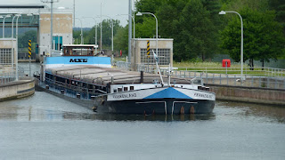 We are now on the Rhine - Main - Danube canal, joining the two major rivers of Europe and allowing shipping traffic to travel from the Black Sea in the east to the North Sea. It is three times shorter than the same trip via the Mediterranean and the ocean. However, because of geography and changing levels along the river, locks are needed to raise and lower the shipping.